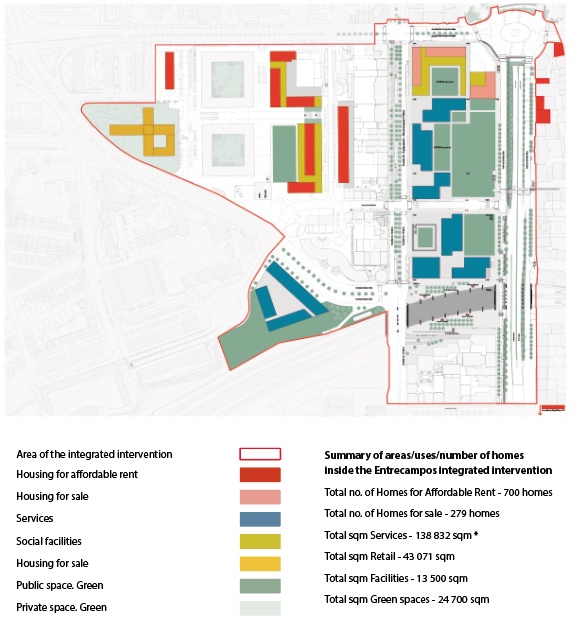 This project, the main asset of which is the site of the former Feira Popular that has been abandoned for so many years, includes the requalification of the northern part of the Avenida da República and Avenida 5 Outubro, and also covers an area of municipal land next to the Avenida das Forças Armadas and between Avenida Álvaro Pais and the railway line near Entrecampos station. The projects plans a total of €800 M of investment of which around €100 M is public money and will include office buildings and around 979 homes and residences of which 700 will be for affordable rent and the others for sale. The initial stage of the project contemplates the conversion, by 2019, of 5 buildings in the Avenida da República. These are in use by the Social Security and will be restored and converted for housing use.