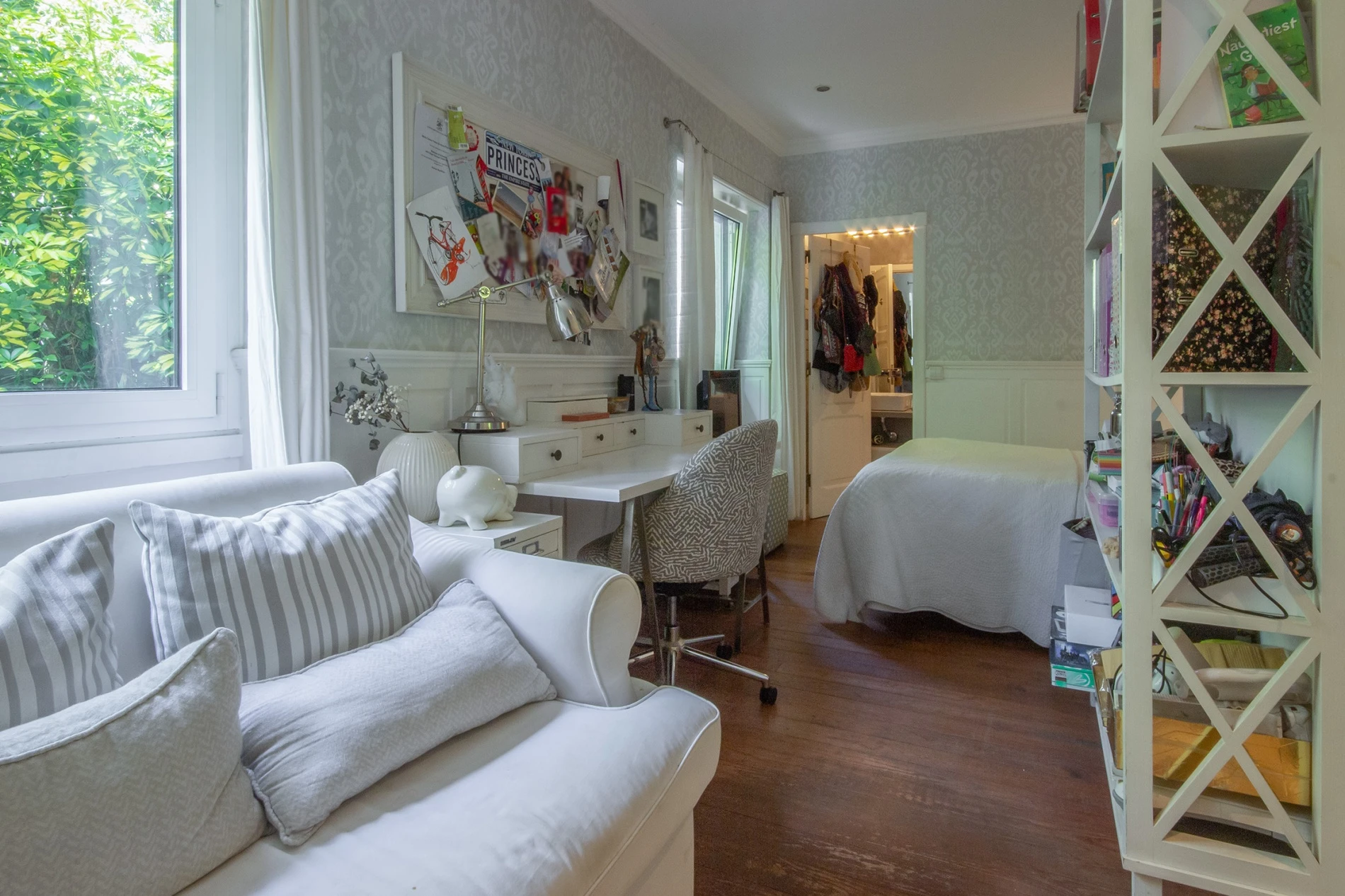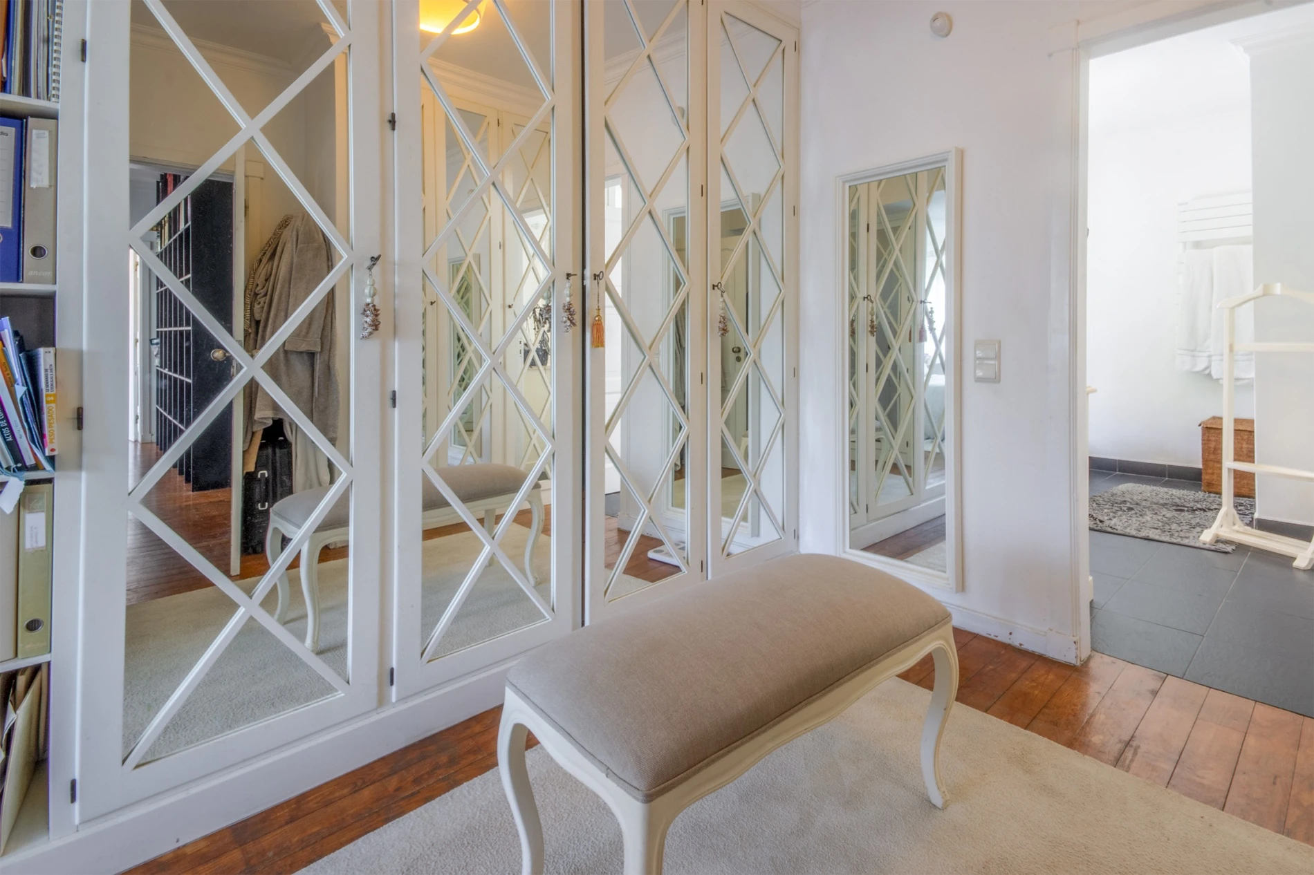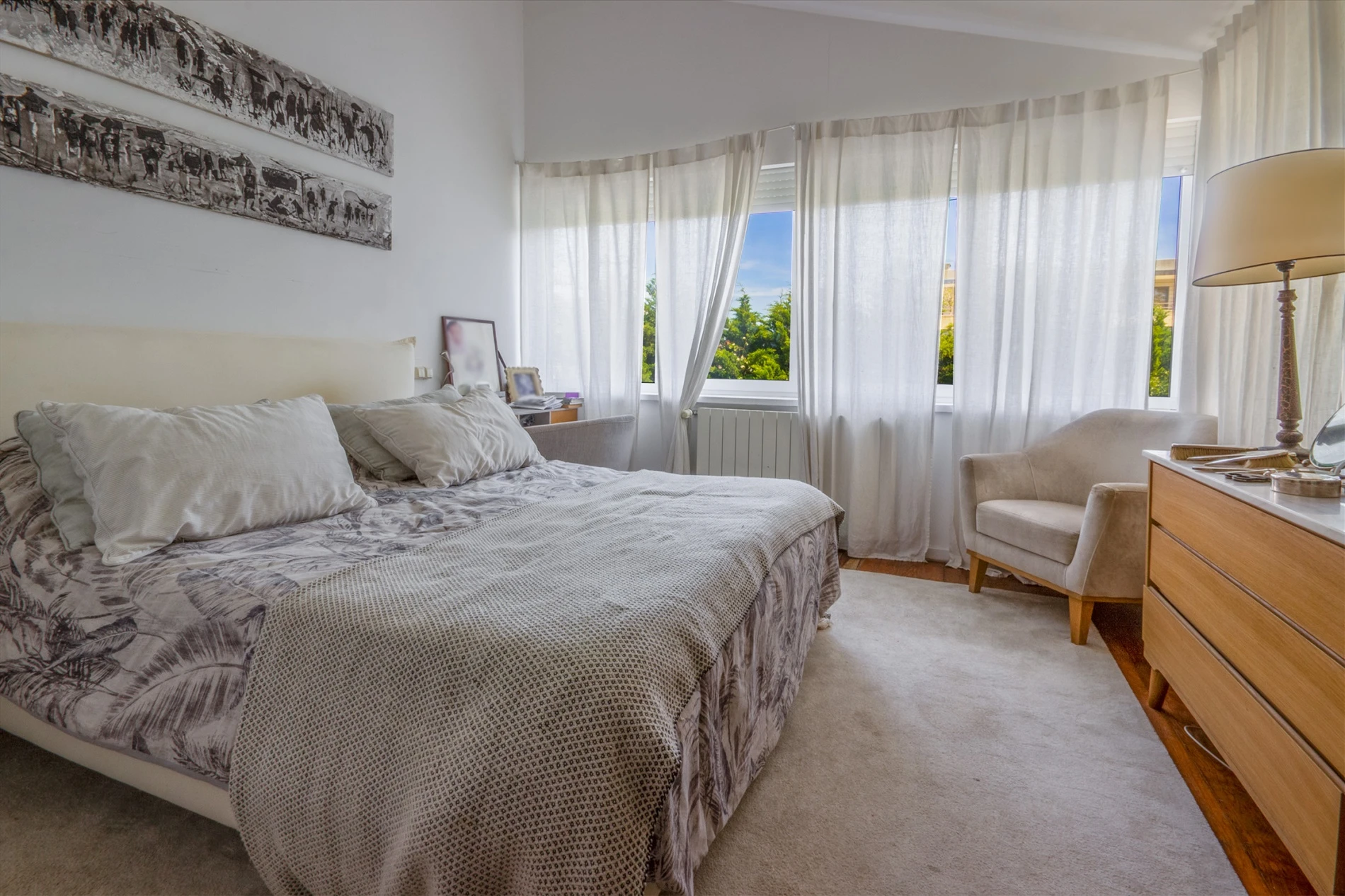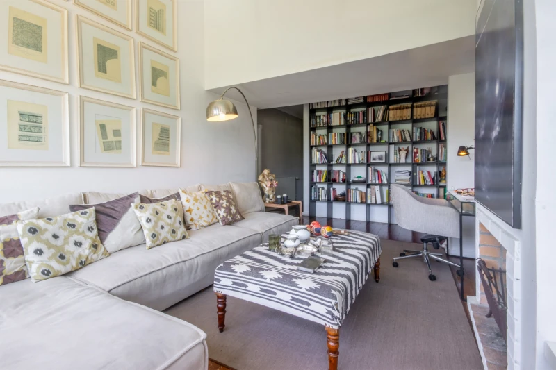 The property is equipped with gas central heating, fireplace, automatic garage door, and double video intercom. All suites include built-in closets. It is fully equipped and furnished, with several custom-designed furniture pieces tailored to the space; the furniture may also be sold. The registered areas do not reflect the current layout of the property.
