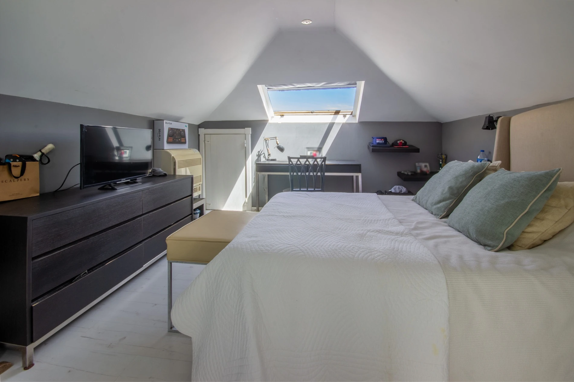 On the 1st floor, there is a TV room and office with 20 m², a master suite with closet 23 m², and 3 additional en-suite bedrooms. The property also includes a garage for 1 car with a laundry area. The attic and additional en-suite bedroom.