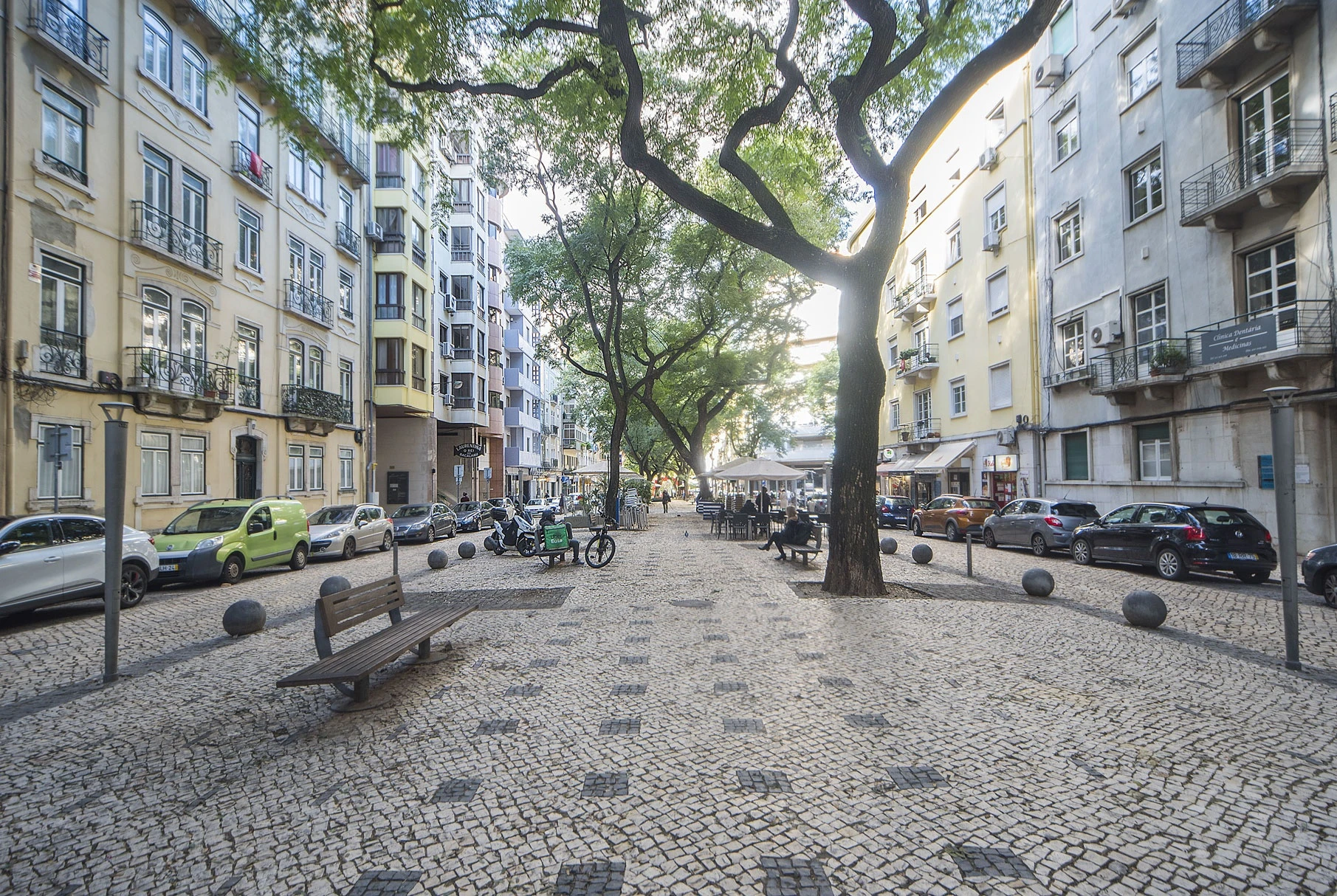 Located in the center of the city, on a residential area and day restaurants with terraces on the closed street, with pedestrian and leisure space, 5 minutes walking distance from the gardens of Gulbenkian.