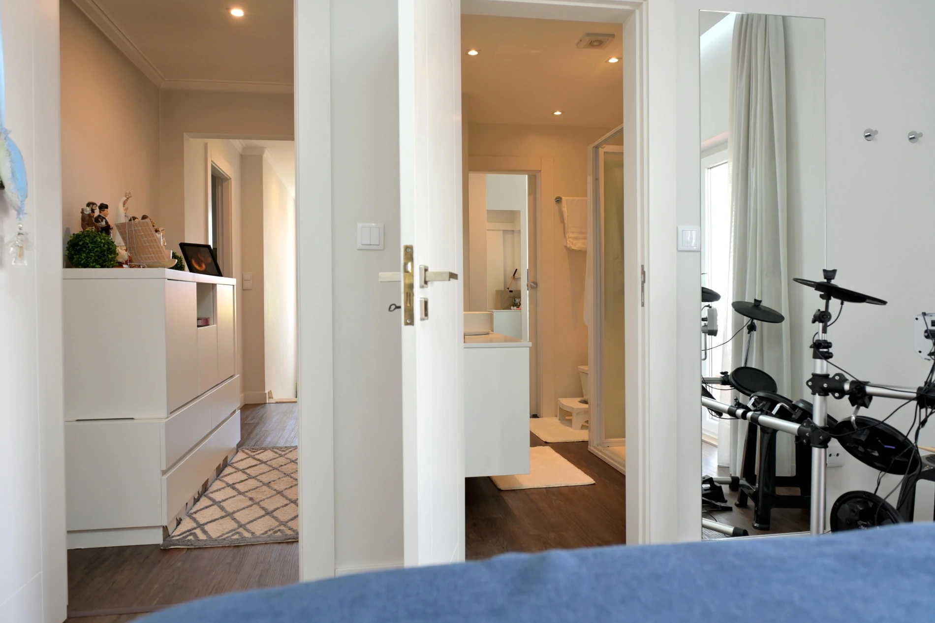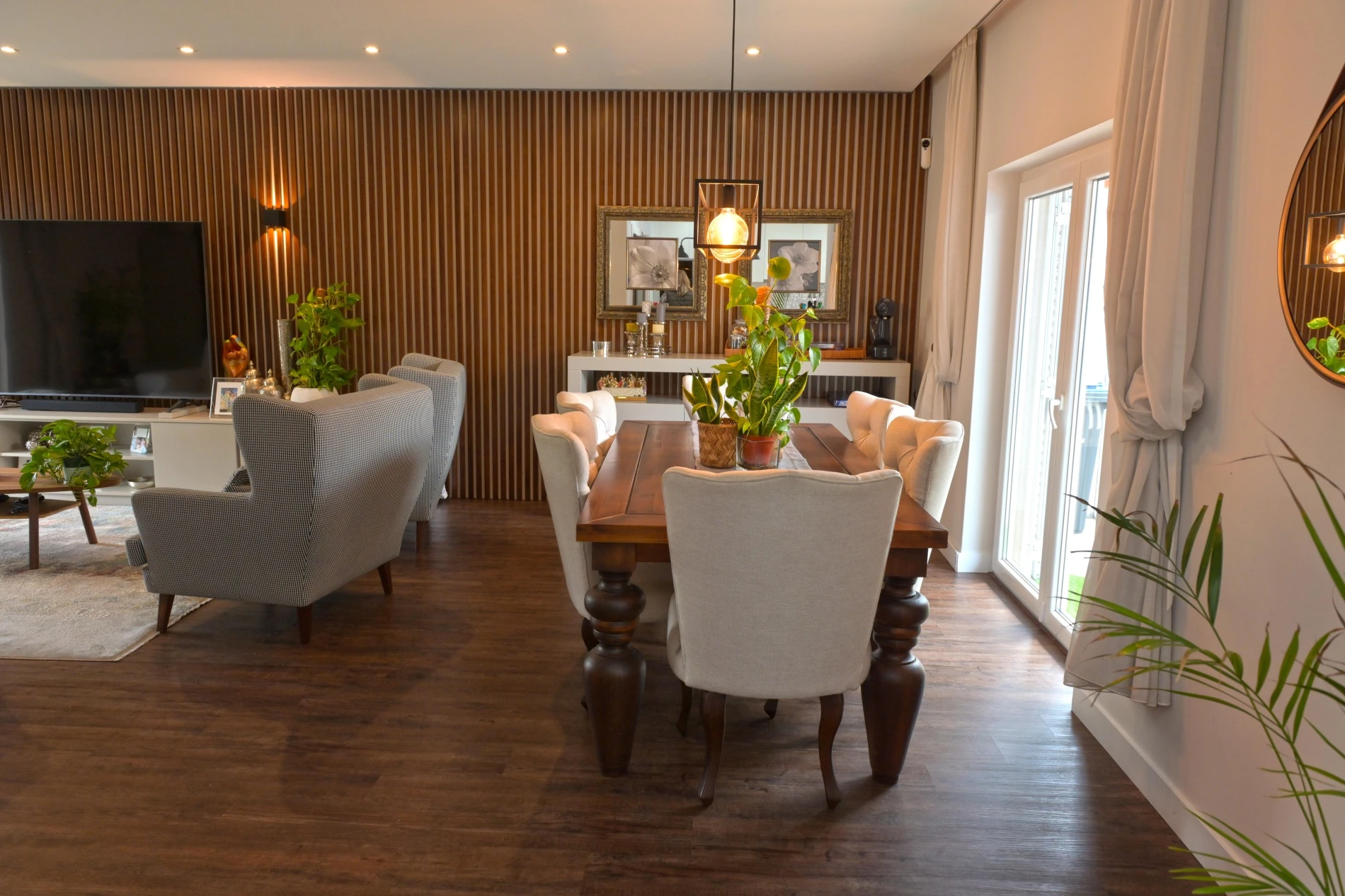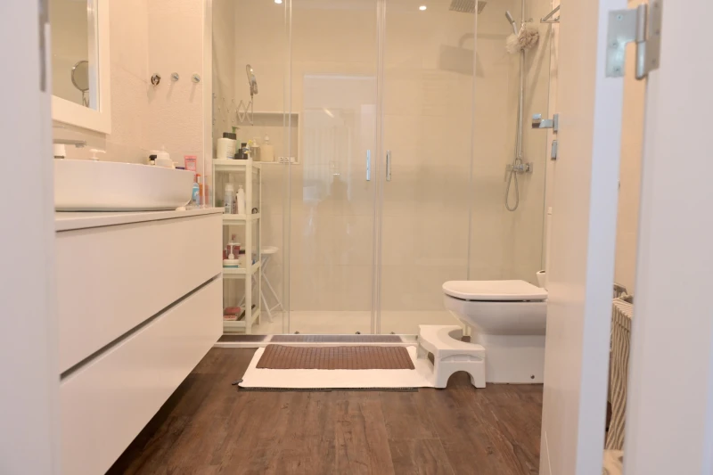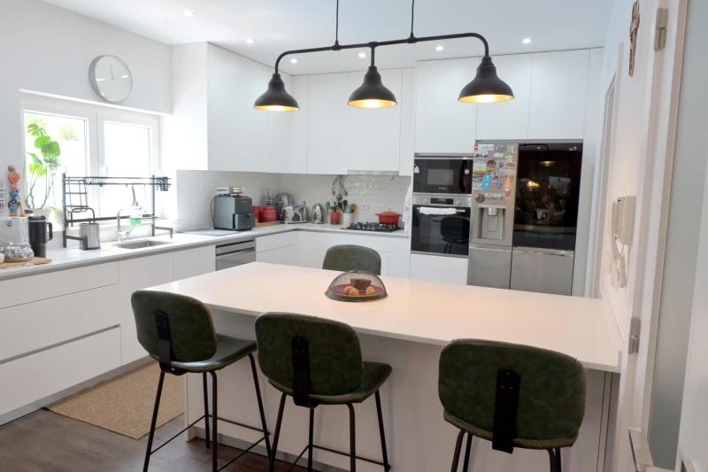 On the ground floor, you'll find a spacious open-plan living and dining areas that flow seamlessly into a fully equipped kitchen. Large glass doors provide direct access to the beautiful landscaped garden. This level also includes a guest bathroom, a practical laundry room, a pantry, and a comfortable en-suite bedroom - ideal for guests or those who prefer single-level living.
