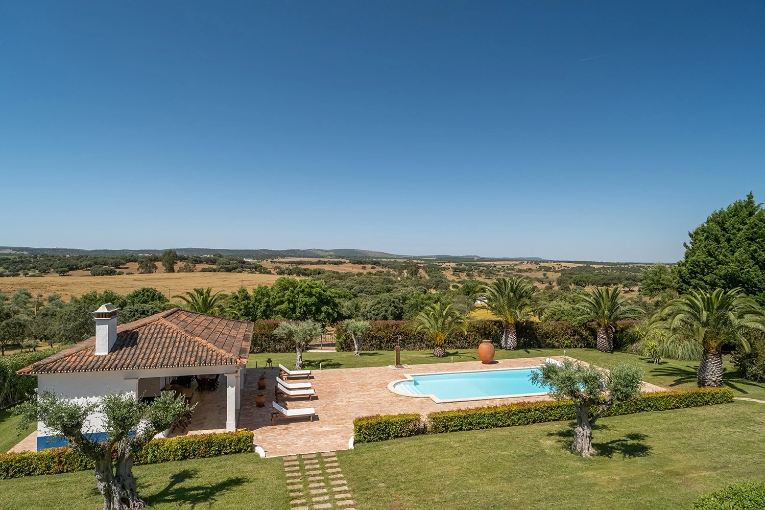 The estate is equipped with central heating and benefits from excellent construction quality, ensuring very good thermal efficiency and comfort. Outdoors, it offers a front porch, a swimming pool with support area with kitchen and independent facilities, a wood workshop, a kennel, a traditional Alentejo-style water tank, and extensive granden areas as well as a garage and storage.