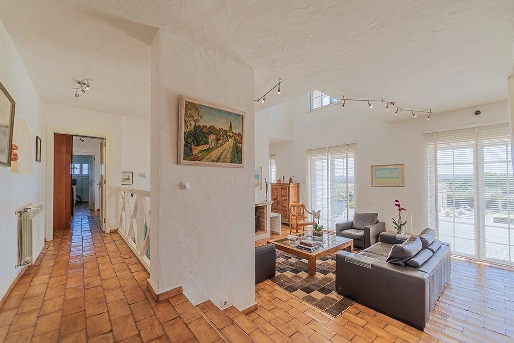 On the ground floor, there is an entrance hall and several living areas, including a main living room with an additional room, an office/library and a video room, a living room and a dinning room, as well as a social bathroom and a kitchen. This floor also includes 3 en-suite bedrooms. On this floor there is also a Terrace, a fireplace and the machine room.