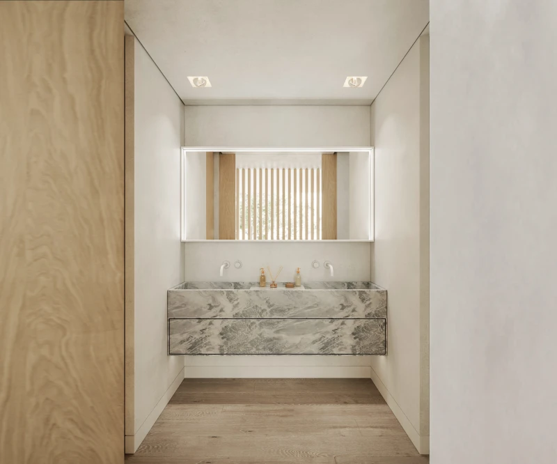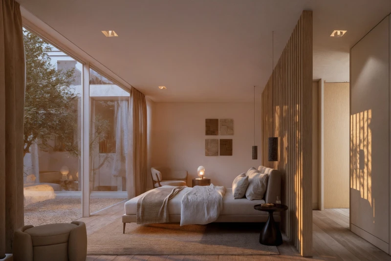 Os interiores refletem uma elegância discreta, marcada por linhas puras, materiais nobres e grandes superfícies envidraçadas do chão ao teto, que inundam os espaços de luz natural. O elevador privativo e a garagem subterrânea multifuncional reforçam a funcionalidade e o conforto em cada detalhe, numa experiência de vida única, marcada pela privacidade e pelo contacto permanente com a natureza.