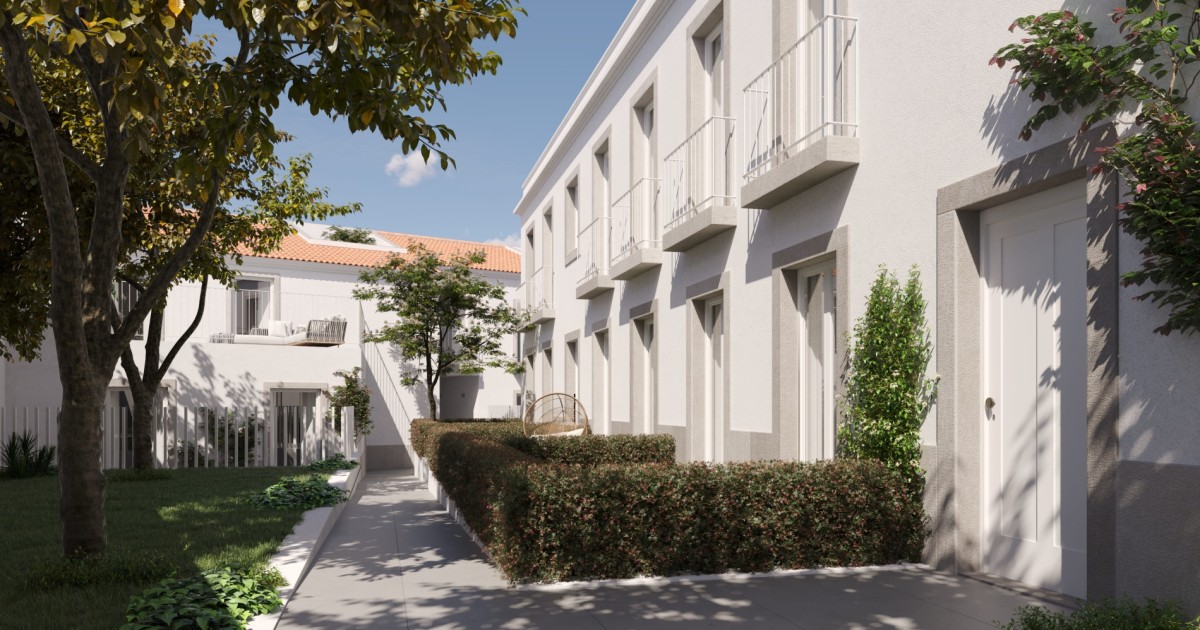 O projeto é composto por dois edifícios residenciais ligados por um jardim comum, oferecendo 15 apartamentos com tipologias que vão de acolhedores estúdios a espaçosos T1, com áreas entre 35 m² e 80 m².