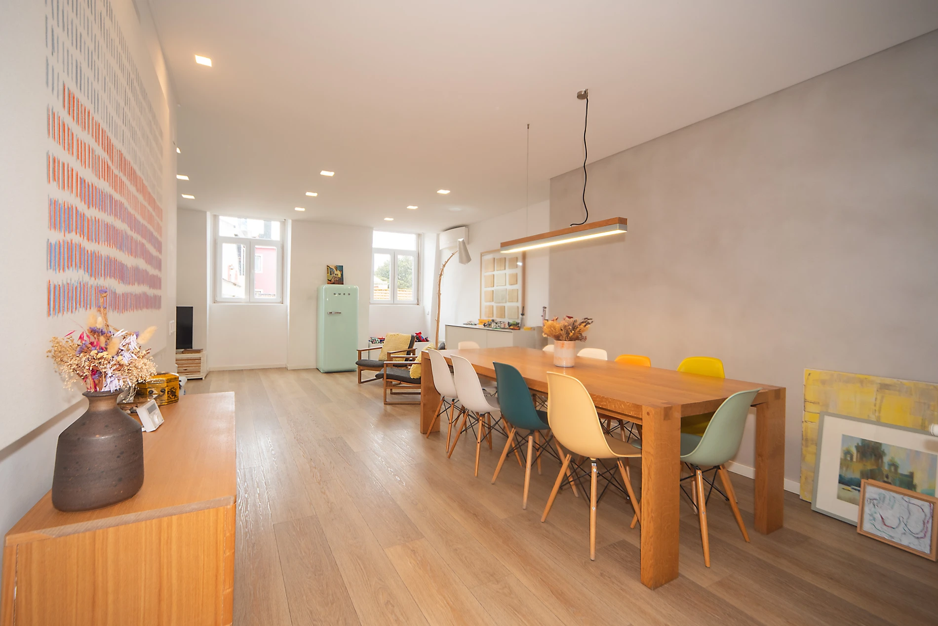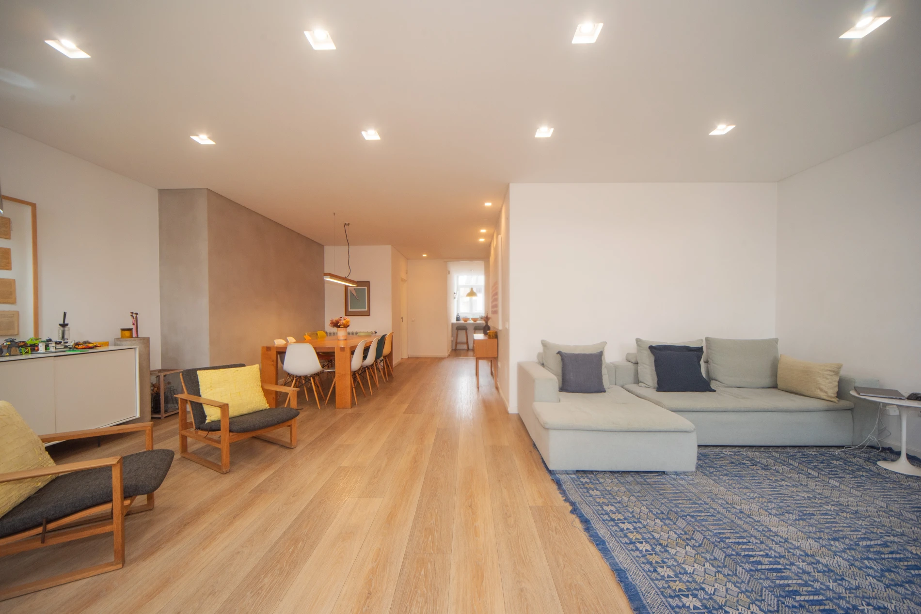 Este apartamento oferece uma distribuição funcional e confortável, composta por hall de entrada amplo, sala de estar e jantar em open space com excelente luminosidade, cozinha espaçosa totalmente equipada e três quartos. Inclui uma master suite com casa de banho privativa e dois quartos adicionais apoiados por casa de banho completa.