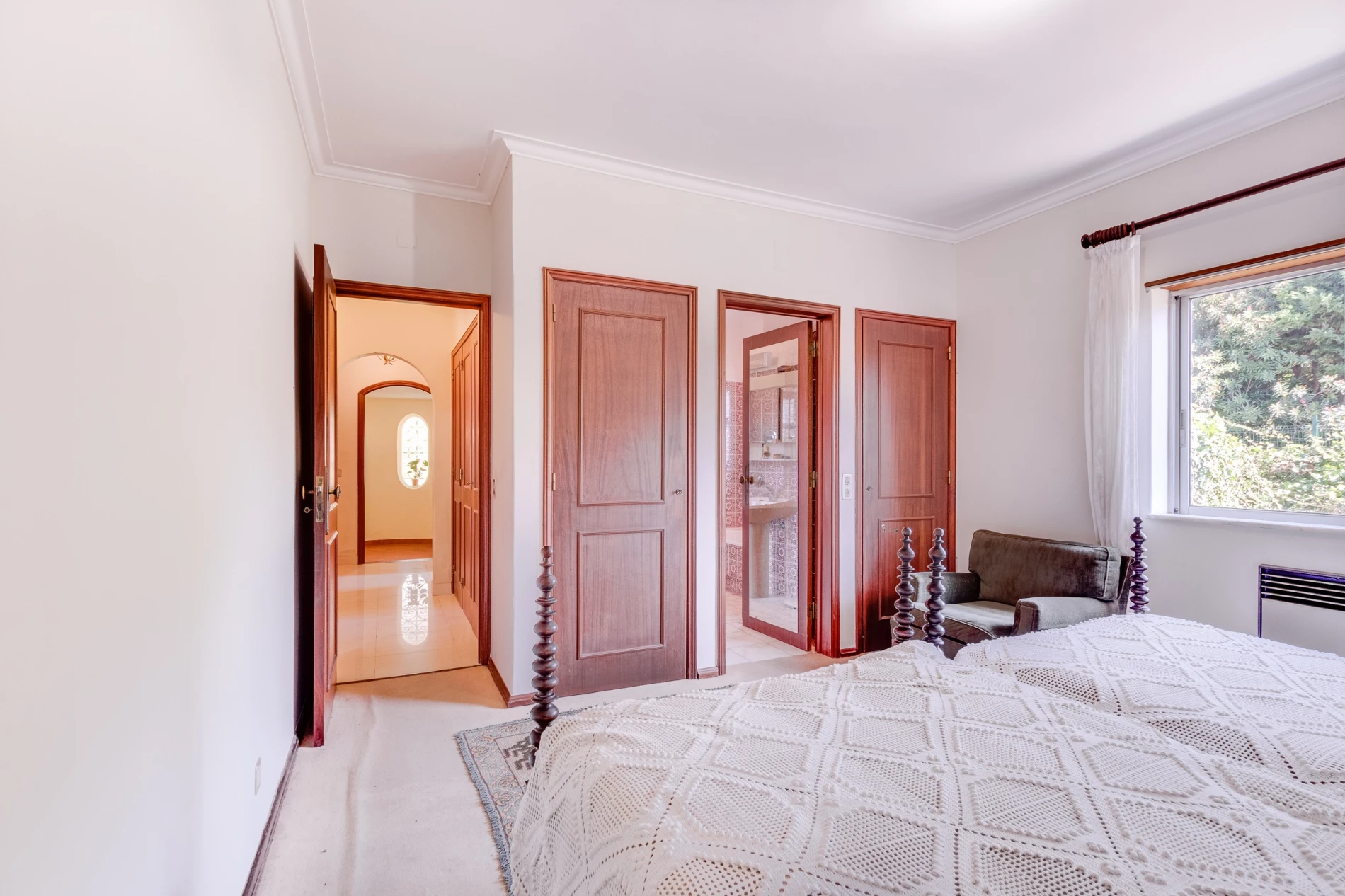 No piso térreo, dispõe de sala de jantar em ligação com a cozinha totalmente equipada, sala de estar com lareira e acesso direto ao exterior, três quartos bem dimensionados, um deles em suíte, e três casas de banho completas. A organização dos espaços privilegia a funcionalidade e a entrada de luz natural.