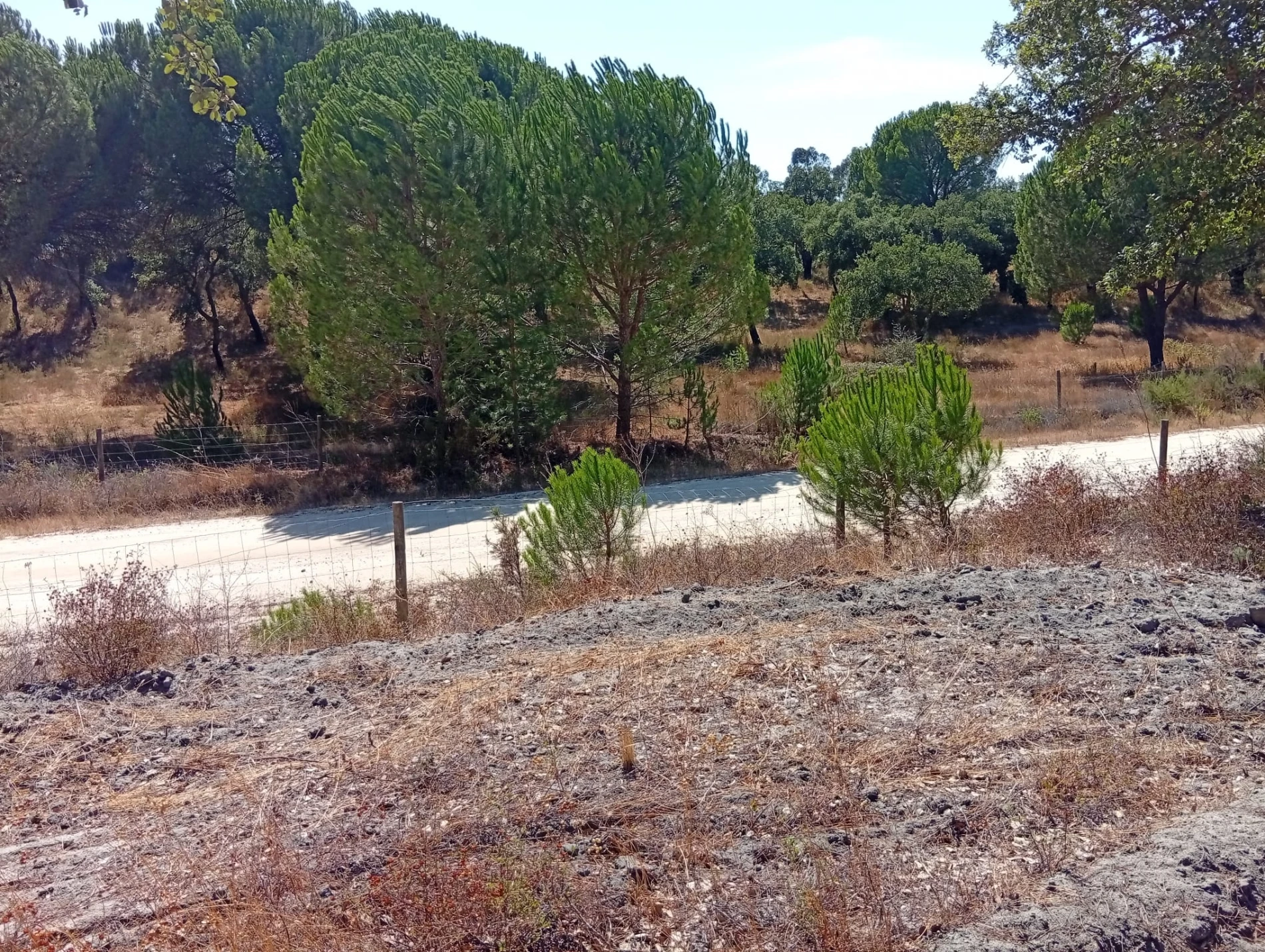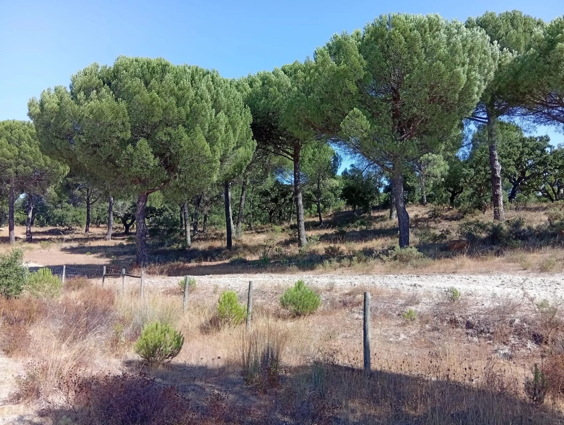 Com uma área total de 29.030 m², o terreno encontra-se totalmente vedado, limpo e bem arborizado, destacando-se pela presença de pinheiros altos e alguns sobreiros, que valorizam a paisagem e garantem um enquadramento natural único. A ligeira elevação do terreno proporciona uma vista aberta e agradável.