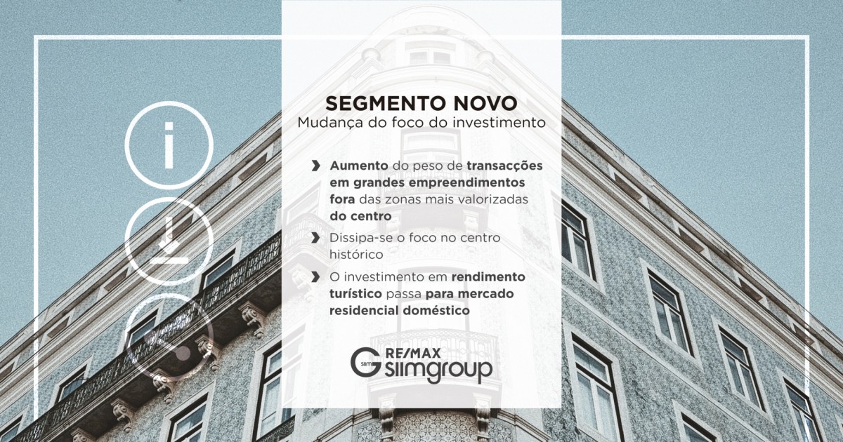 Aumento do peso de transacções em grandes empreendimentos fora das zonas mais valorizadas do centro. Dissipa-se o foco no centro históricoO investimento em rendimento turístico passa para mercado residencial doméstico