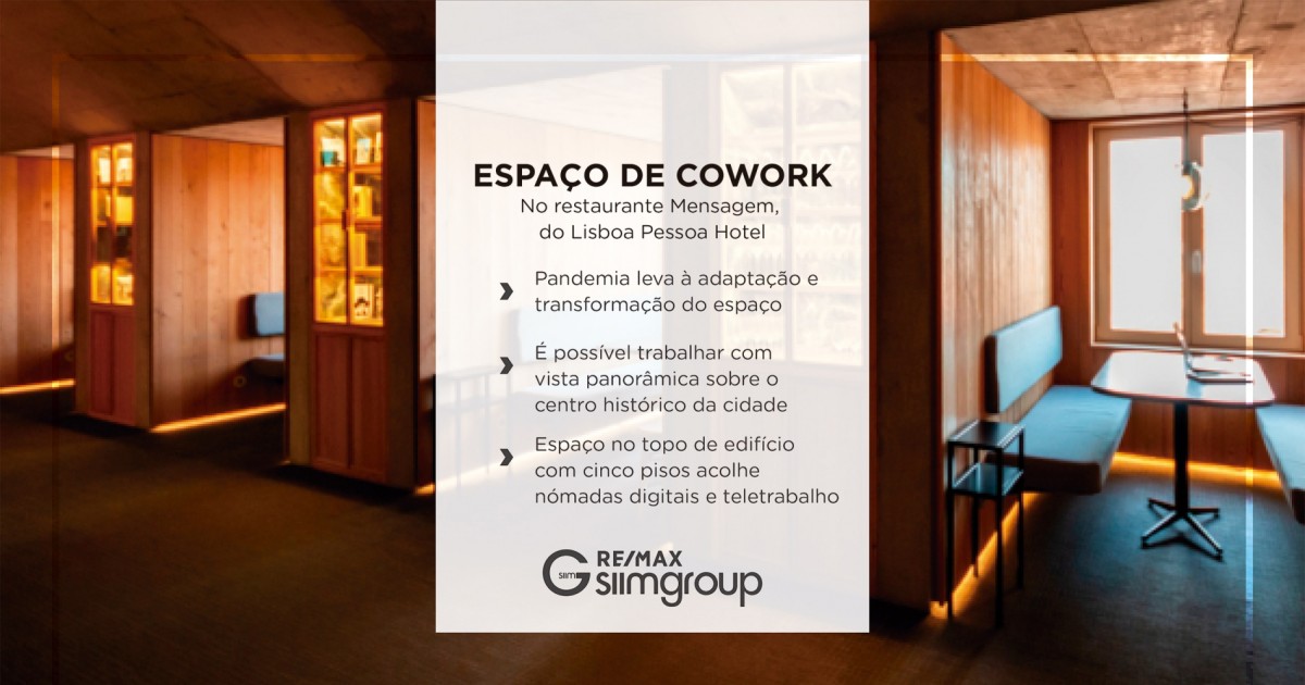 No restaurante Mensagem, do Lisboa Pessoa Hotel, em vez de refeições servem-se agora espaços de cowork. Para se adaptar ao tempo de pandemia e à falta de clientes, o restaurante/bar panorâmico transformou-se num espaço onde qualquer nómada digital ou cidadão em teletrabalho pode passar algumas horas com conforto e uma vista incrível.